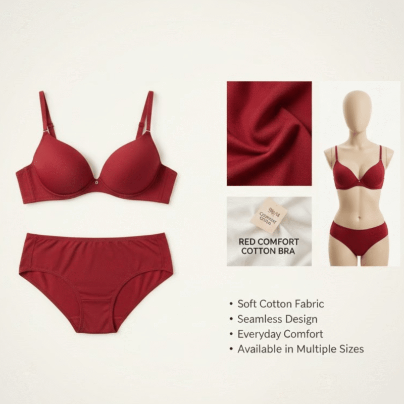 Red Cotton Bra Panty Set – Soft, Stylish & Everyday Comfort